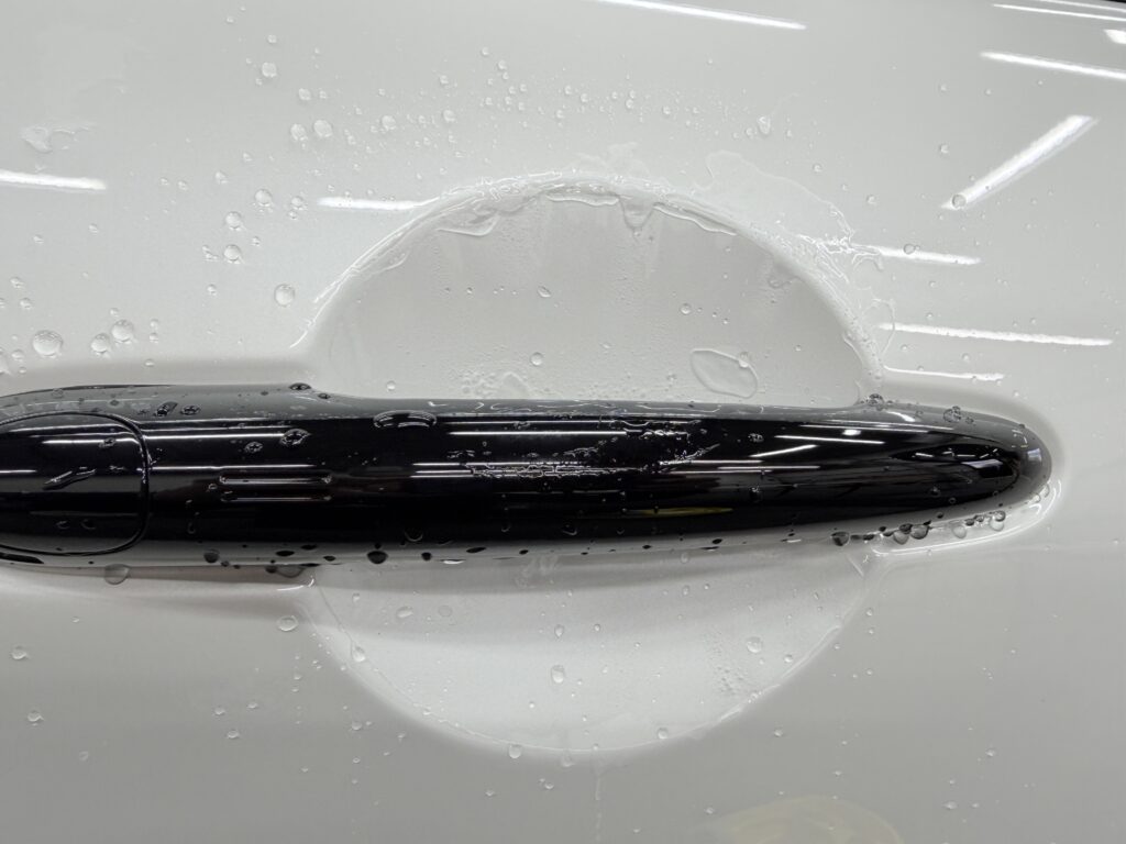 ここにプロテクションフィルムを貼ることで、「自己修復機能」により洗車傷レベルなら熱で自然に修復。 いつ見ても深みのある黒い艶を保つことができます。乗り降りの際に手をついてしまっても安心です。