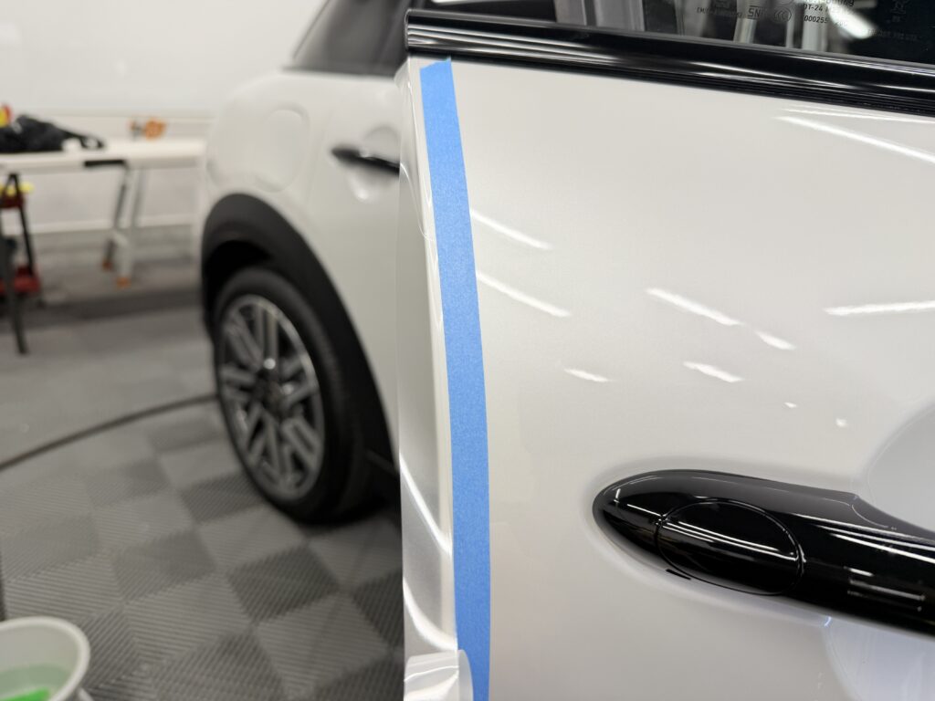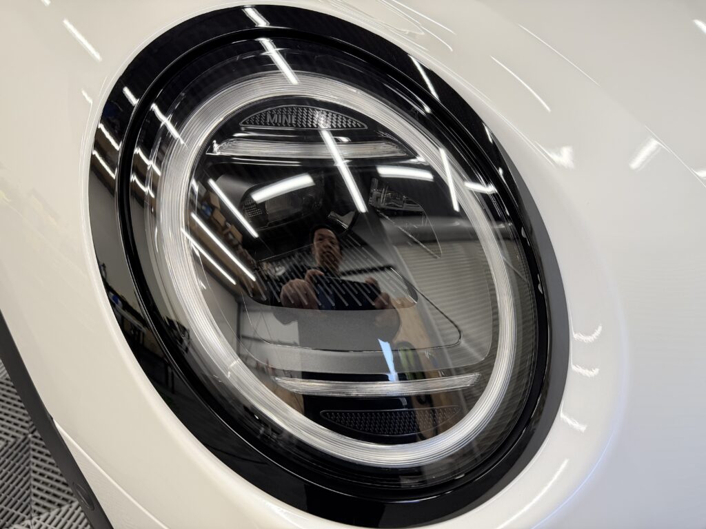 今回のF65 MINIのお客様も、「以前の車でヘッドライトの劣化に悩まされたから、今回は絶対に最初に貼る!」と決めていらっしゃいました。