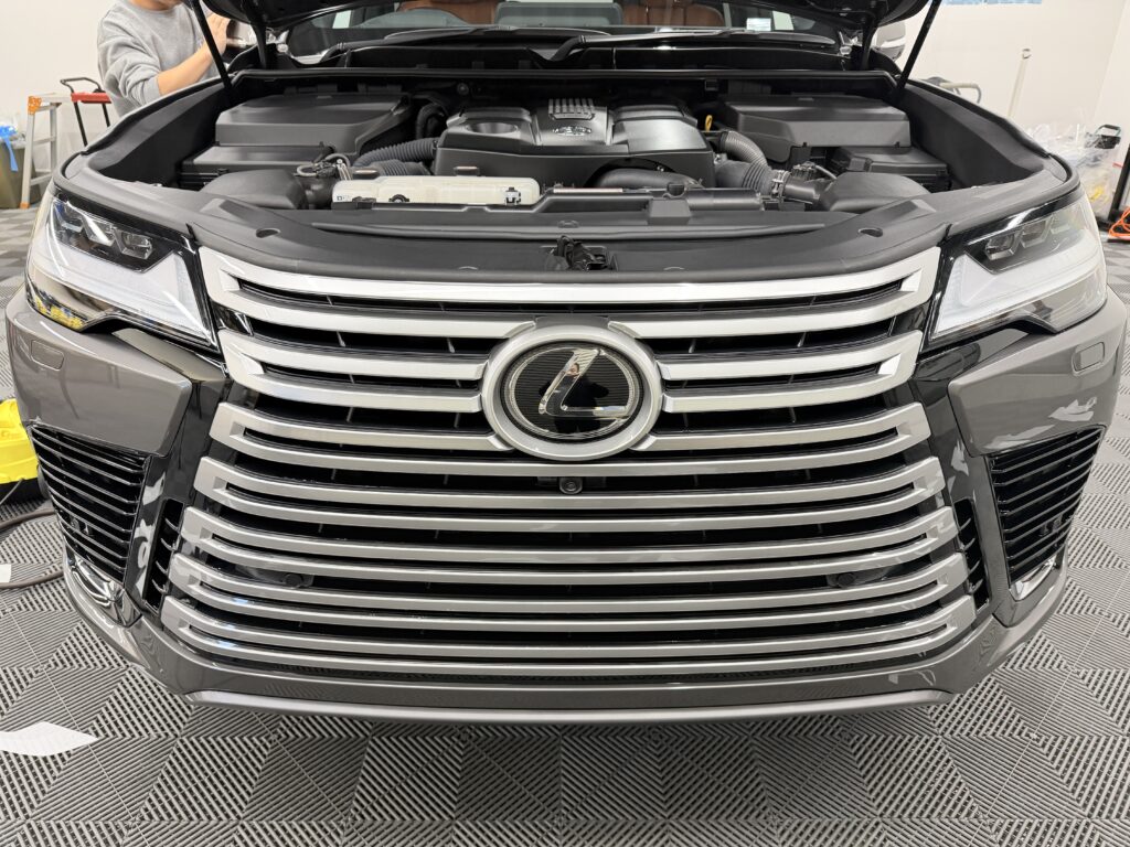 LX600のフロントフェイス、特にあの巨大で複雑なスピンドルグリルは、施工店としての技術が試される箇所です。