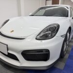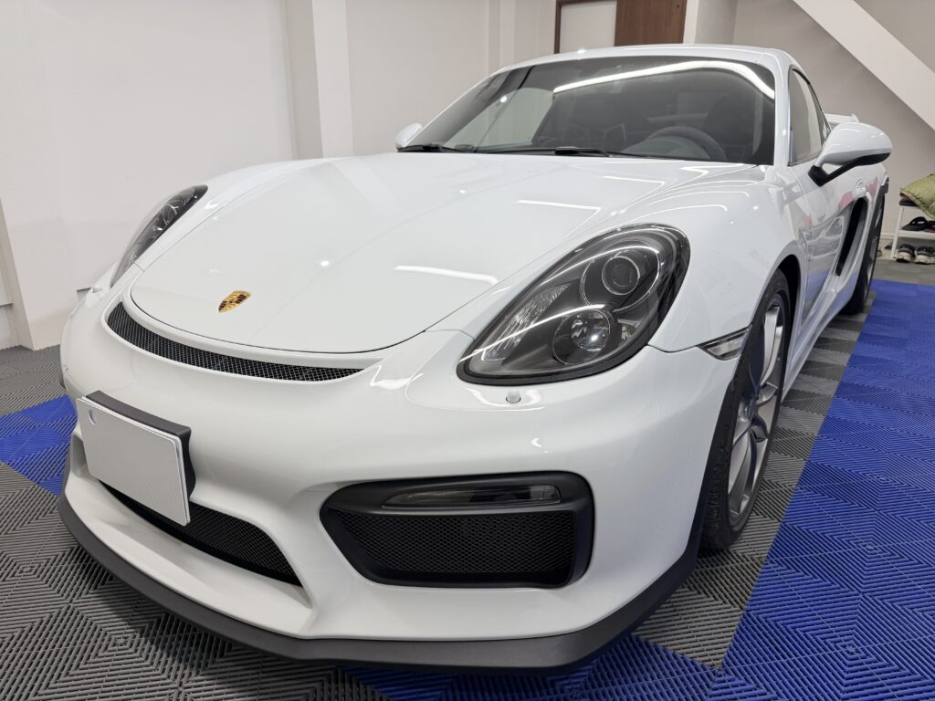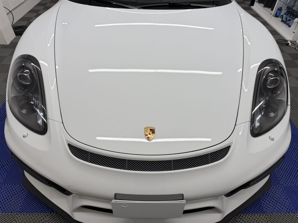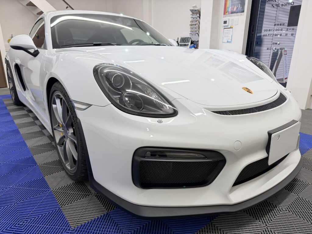 今回は、ポルシェ 981 ケイマン GT4 のオーナー様より、「5年前に施工したフルボディプロテクションフィルムの端部の汚れが気になる」とご相談をいただきました。