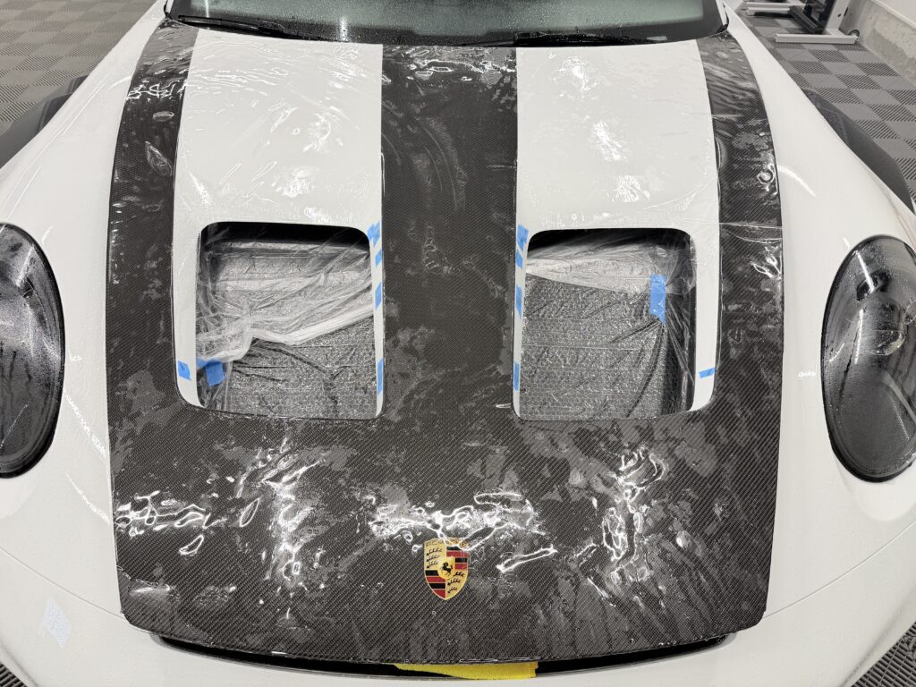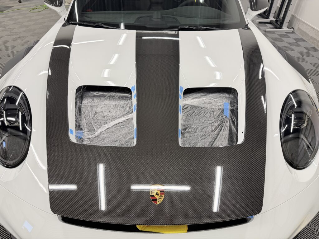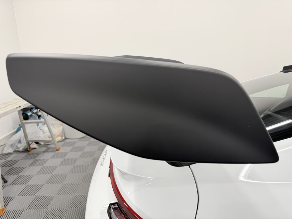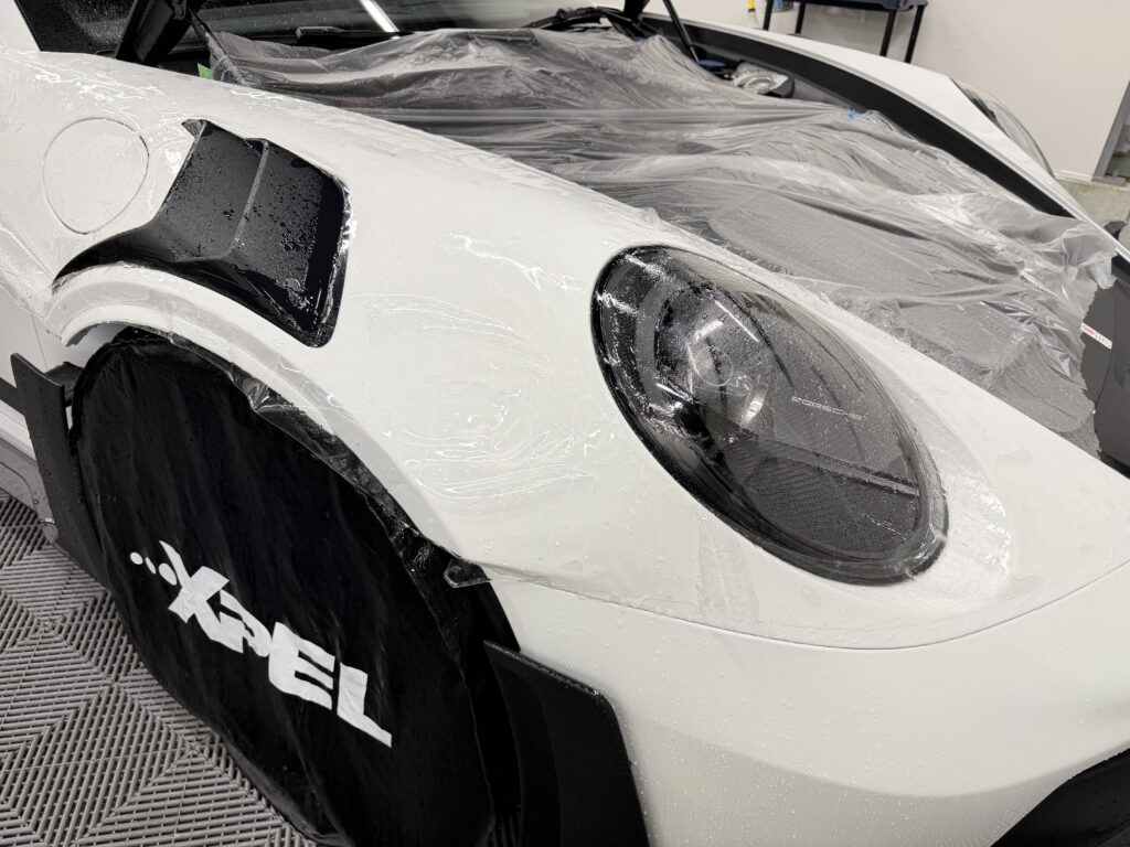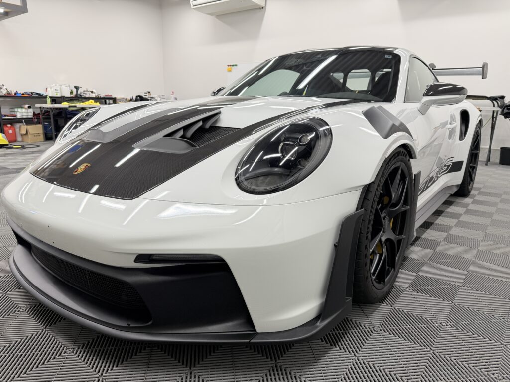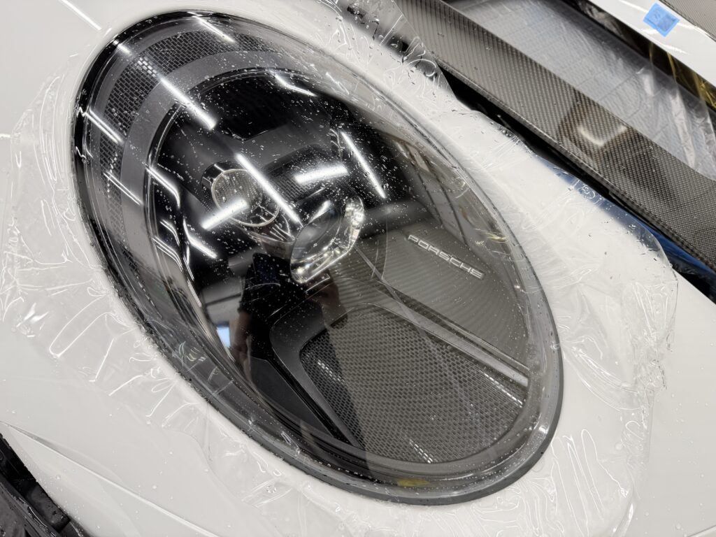 GT3 RSの複雑なバンパー形状やカーボンボンネットのダクト周り、ヘッドライトの曲面にミリ単位で完璧にフィットするよう事前にフィルムをプレカットするため、ボディ上でカッターの刃を当てるリスクを完全に排除。まるでフィルムを貼っていないかのような、自然で美しい仕上がりをお約束します。