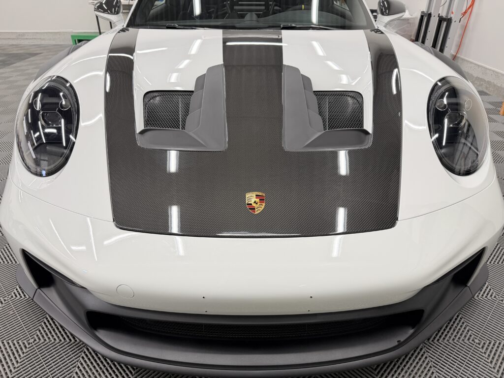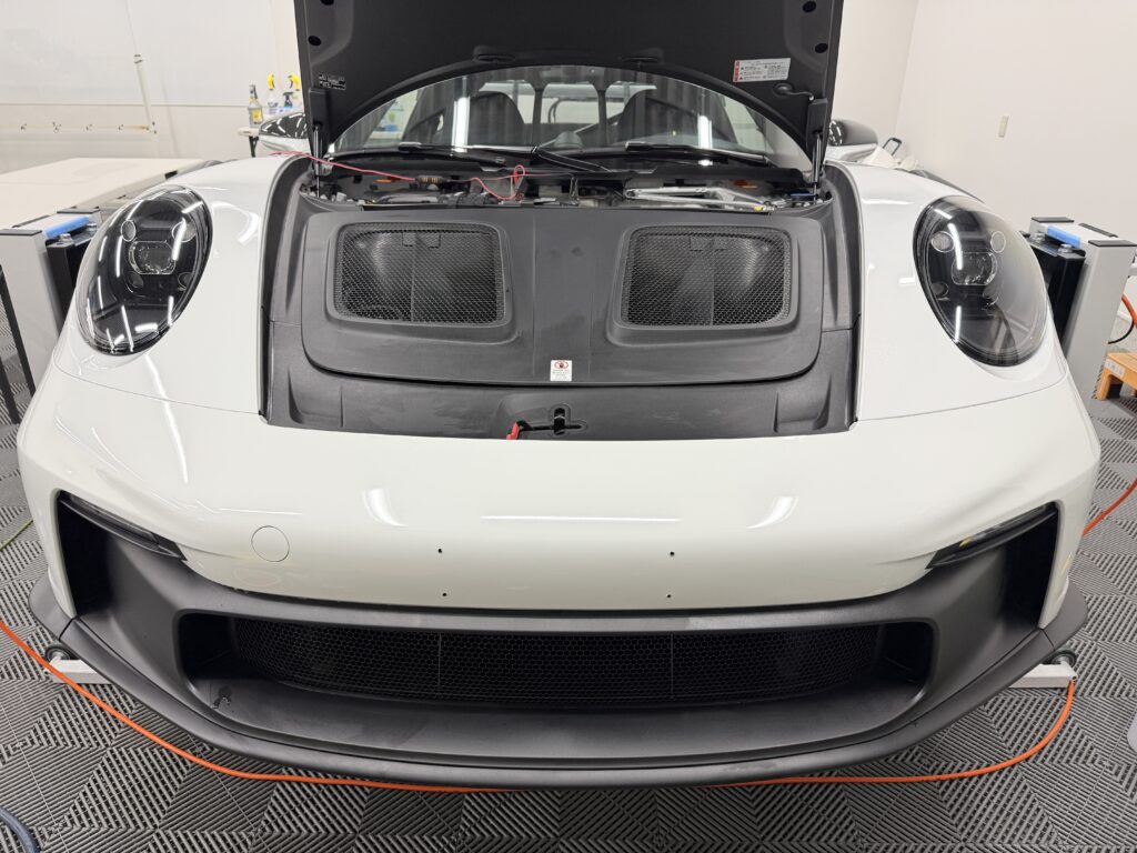 フロントガラスやボンネット、バンパーは、走行中に最もダメージを受けやすい部分です。特にGT3 RSのような超高性能マシンは、自身のスピードだけでなく、先行車が巻き上げる飛び石の直撃を受けるリスクが格段に高まります。