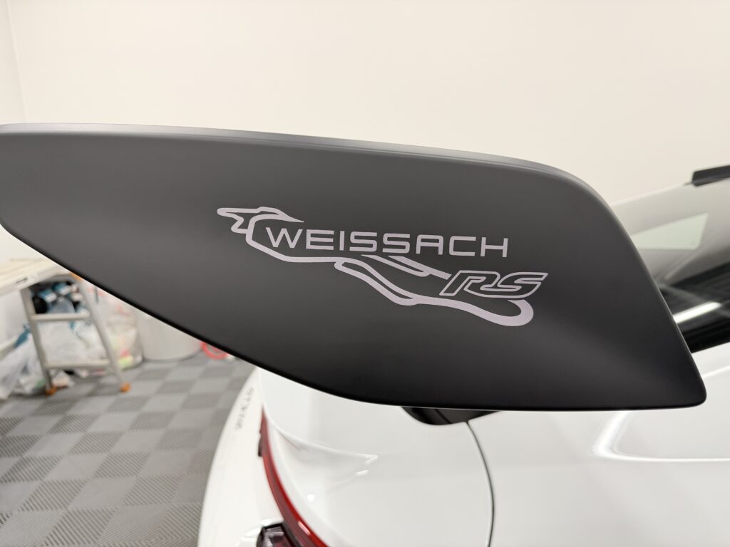 特別感を加速させるリアウィング「WEISSACH」ステッカー施工