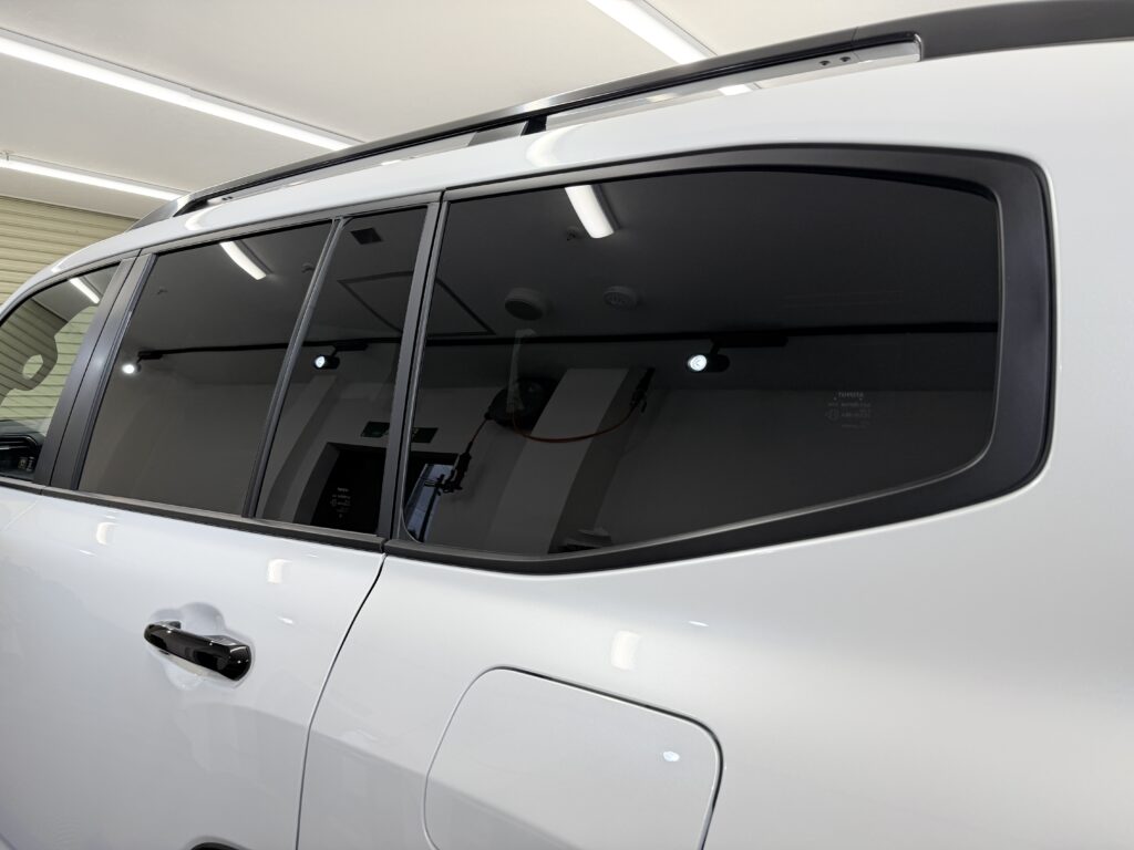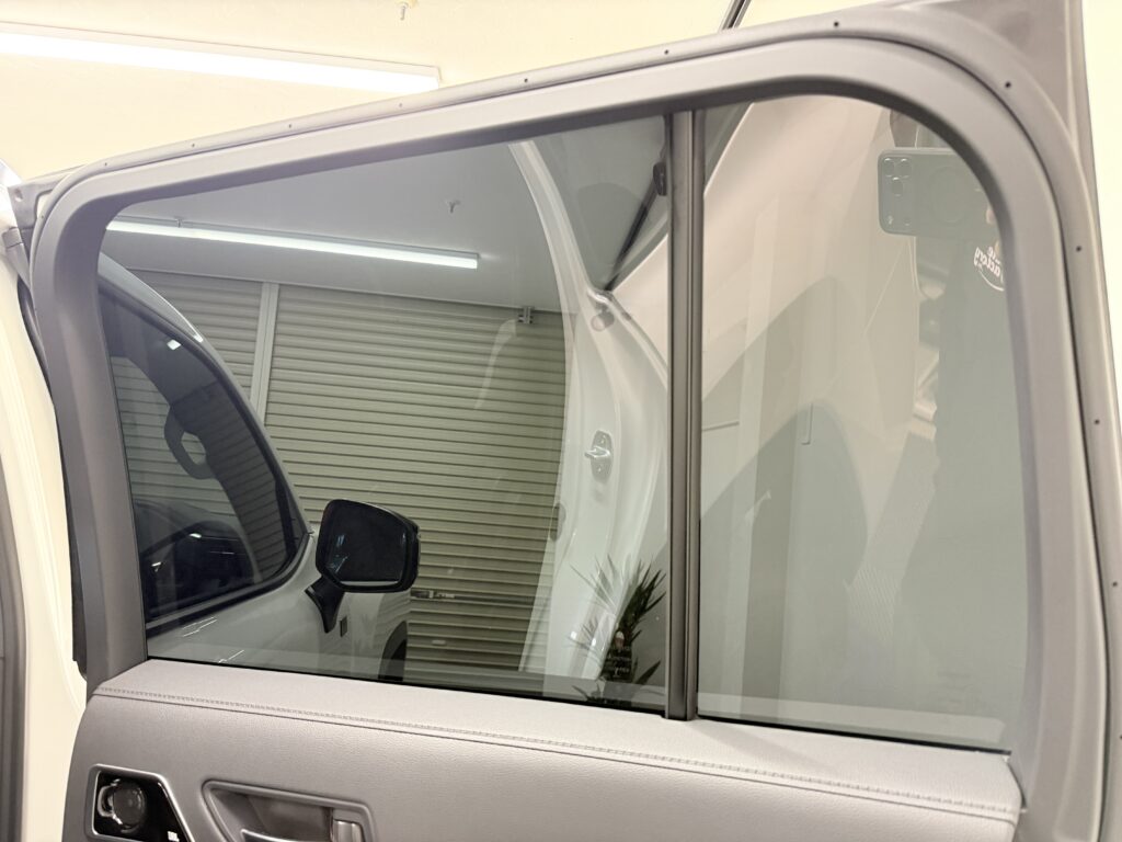 後部ガラス7面には、遮熱効果の高いカーフィルム「IR15%」を施工しました。
