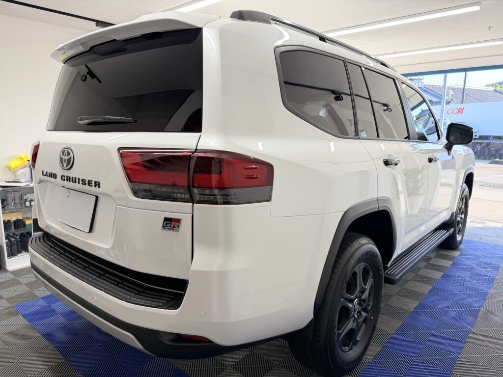 今回は、圧倒的な存在感と走破性で大人気のSUV、トヨタ GRランドクルーザー300(新車)の施工事例をご紹介します。 オーナー様の大切な愛車を、紫外線や汚れ、飛び石などのダメージから徹底的に守るため、ボディコーティングからフィルム施工まで、こだわりのフルコースでオーダーいただきました。