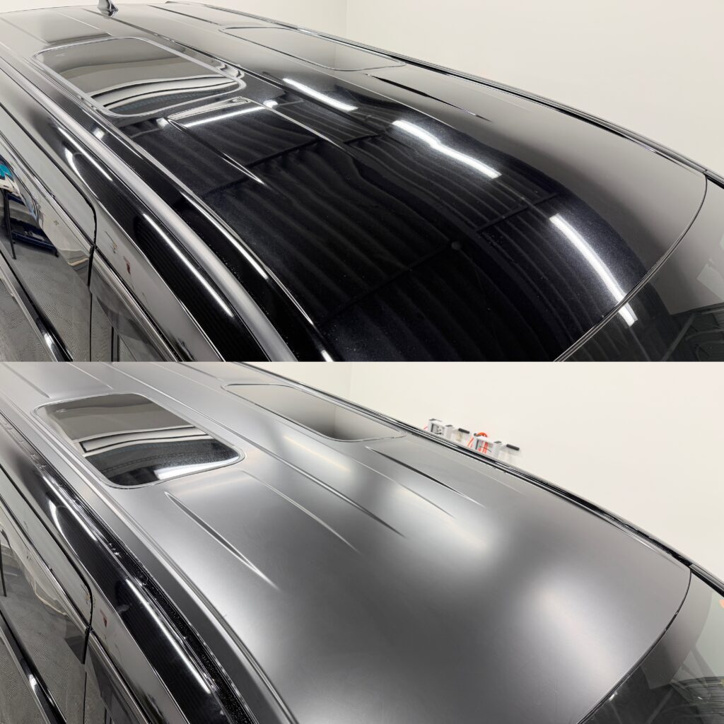 もともとの美しい艶ありブラックから、存在感溢れるマットブラックへと劇的なイメージチェンジを図りつつ、ボディを強力に保護する施工の様子をご紹介します。