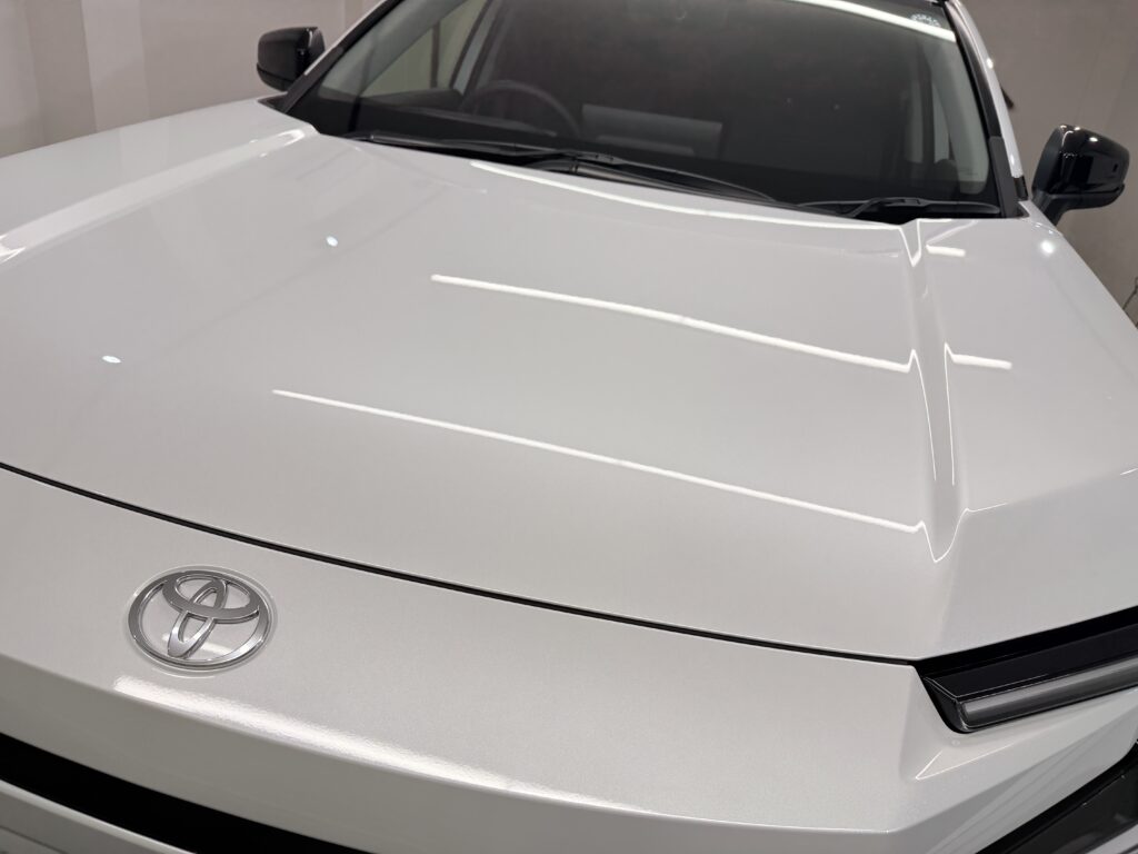 純白のボディに、耐久性と防汚性に優れたセラミックコーティングを施工いたしました。新車特有の美しい艶をさらに引き立てるとともに、強靭な被膜が紫外線や酸性雨、汚れからボディをしっかりと保護します。日々の洗車も水洗いで汚れが落ちやすくなり、メンテナンスの負担を大幅に軽減します。