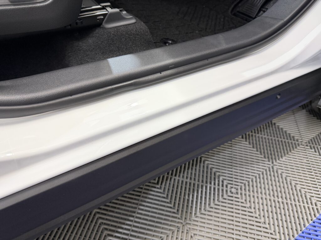 お車に乗り降りする際、無意識のうちに爪や靴で傷をつけてしまいがちな箇所には、透明なプロテクションフィルム(PPF)を施工しました。