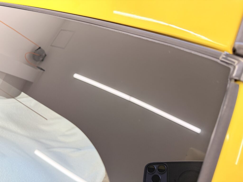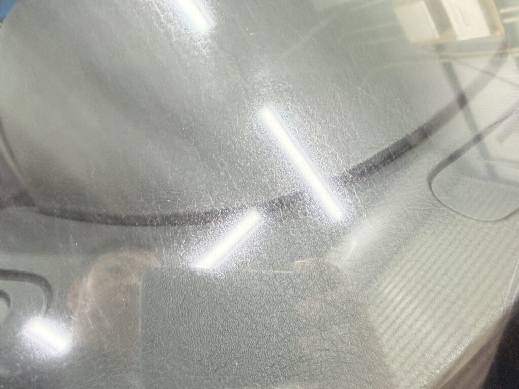 ガラスは非常に硬い素材でありながら、研磨の方法を間違えると簡単に歪みや消えない傷が入ってしまいます。ボディと同じような感覚や機材で磨くことはできず、専用の研磨剤、バフ、そして何よりガラスの特性を熟知した高い技術力が不可欠です。