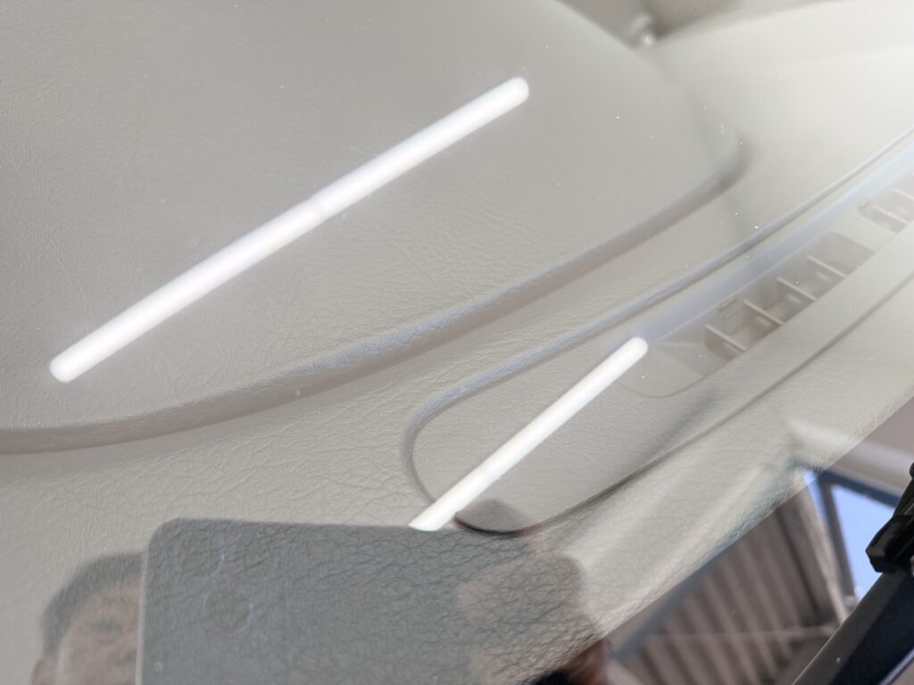 とはいえ、10年以上の経験を持ち、これまで数多くのお車を施工してきた弊社にとっても、26年分の強固なウロコの蓄積は「過去一」と言えるほど大変な作業でした。ガラスにダメージや歪みを与えないよう慎重に作業を進めた結果、わずか20cm四方を磨くのになんと2時間というとてつもない時間を費やすことに。