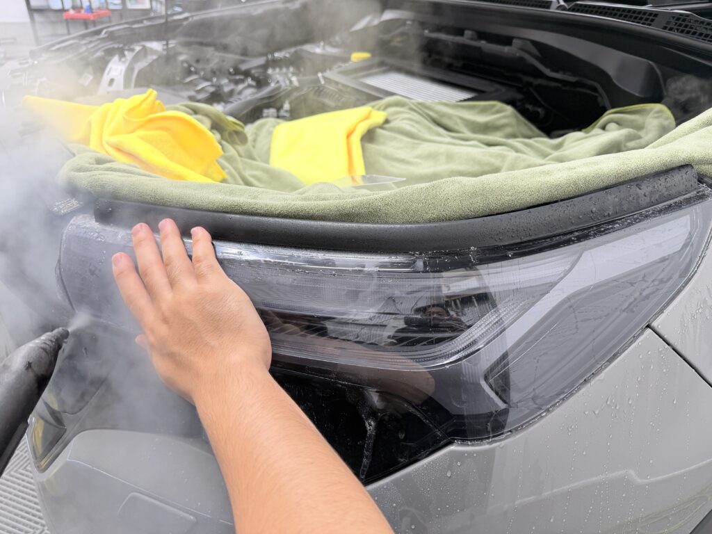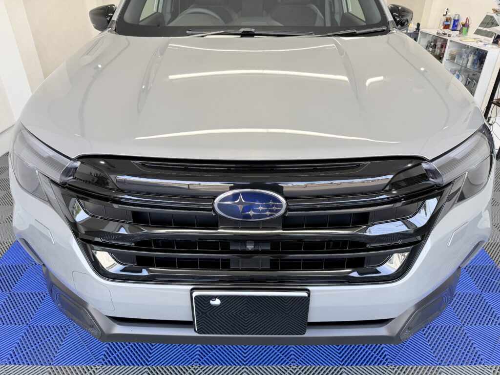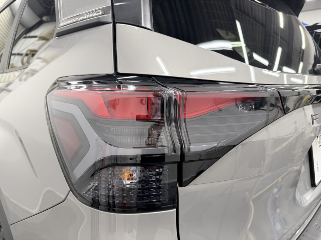 今回の施工の最大のポイントは、灯火類とエンブレムへのライトスモークプロテクションフィルム施工です。これにより、新型フォレスターに更なる個性を与え、おしゃれなカスタムを実現しました。